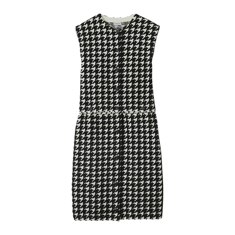 Burberry Ladies Outerwear. Fashion category: Casual Dresses. SKU: 8081991. Color: Black Ip Pattern. Burberry Womens Houndstooth Nylon Blend Dress. This sleeveless dress, made in Italy from a nylon blend, features a knitted houndstooth pattern and can be unfastened at the waist to transform into a two-piece set. Finished with press-stud closures, it offers a slim, form-fitting silhouette. Material: 62% polyester, 20% viscose, 17% polyamide, 1% elastane. Made in Italy.