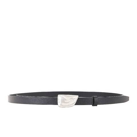 Burberry Ladies Belts. Fashion category: Belts. SKU: 8088202. Color: Black. Burberry Signature Shield Leather Belt. This belt features a sleek silver-tone logo plaque, complemented by a snap-fit fastening and punched holes, with belt loops for added functionality. Its adjustable fit ensures a perfect blend of style and comfort. 100% Calf Leather. Made in Italy.