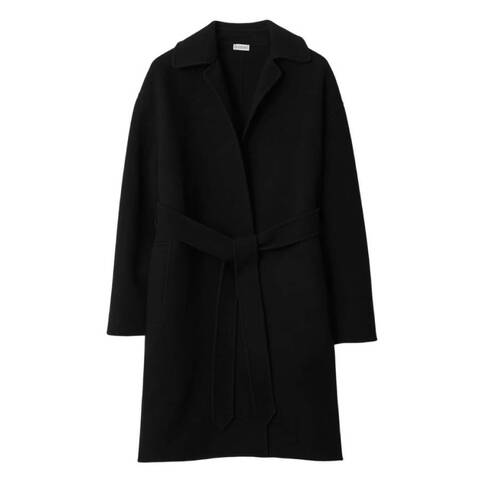 Burberry Ladies Outerwear. Fashion category: Coats & Jackets. SKU: 8083942. Color: Black. Burberry Belted Cashmere Wrap Coat. This wrap coat is crafted from double-faced boiled cashmere and tailored in Italy to an oversized fit. The unlined design features long sleeves, side welt pockets, and a self-tie belt to adjust the silhouette for an elegant, versatile finish. 100% Cashmere. Made in Italy.