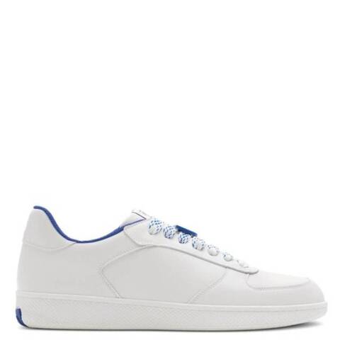 Burberry Mens Sneakers. SKU: 8095452. Color: White. Burberry Terrace Leather Low-Top Sneakers. These Italian-made sneakers are crafted from smooth calf leather and feature a detachable shield charm embossed with the iconic Equestrian Knight Design. The mesh-lined silhouette is finished with check laces and rubber soles moulded with archive Burberry lettering. Designed with a rounded toe, an Equestrian Knight Design label at the tongue, and a leather insole, they combine heritage detailing with everyday comfort. Outer: 100% calf leather. Lining: 42% polyester, 40% calf leather, 11% sheep leather, 7% goat suede. Made in Italy. <br/><br/><b>Please visit the brand website for sizing information.</b>