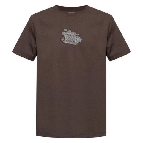 Burberry Mens Tops. Fashion category: T-Shirts & Henleys. SKU: 8097878. Color: Shadow. Burberry Paisley EKD Cotton Jersey T-Shirt. This cotton jersey T-shirt is printed with Burberrys Equestrian Knight Design intertwined with a hand-drawn paisley pattern. Cut to a slim fit, it is finished with a rib-knit neckline for a clean, refined look. 100% Cotton.