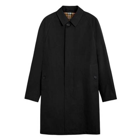 Burberry Mens Outerwear. Fashion category: Coats & Jackets. SKU: 8002131. Color: Black. Burberry The Camden Gabardine Car Coat. This Car Coat is crafted from fluid tropical gabardine for a lightweight, polished look. It features a concealed single-breasted button closure, button-through welt pockets, interior button-through jet pockets, and a throat latch. Signature details include a hook-and-eye collar closure, button-tab cuffs, a back button-through vent, and a check undercollar. Outer: 100% cotton. Made in Italy.