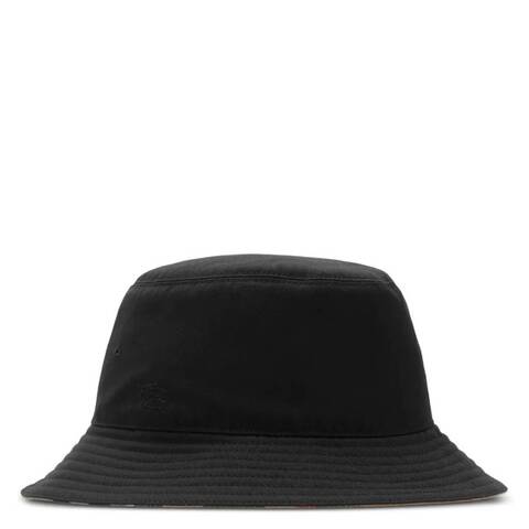 Burberry Mens Hats. Fashion category: Hats. SKU: 8083528. Color: Black. Burberry Vintage Reversible Bucket Hat. Crafted in Italy from cotton-blend twill, this reversible bucket hat offers two versatile looks, switching from a solid color to the iconic Burberry Check. Finished with signature B-cut hardware. 66% Polyester; 34% Cotton. Made in Italy.