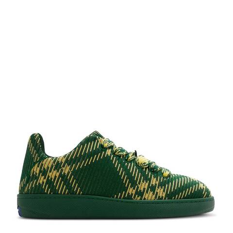 Burberry Mens Sneakers. SKU: 8081586. Color: Primrose Ip Check. Burberry Checkered Box Sneakers. The sneakers feature a logo at the sole, a check pattern, a square toe, a front lace-up fastening, a branded insole, and a flat sole. Made from Polyamide 98%, Elastane 2%, Made in Italy. <br/><br/><b>Please visit the brand website for sizing information.</b>