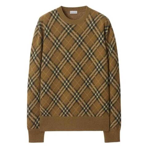 Burberry Ladies Tops. Fashion category: Cardigans & Sweaters. SKU: 8099622. Color: Shrew Ip Check. Burberry Check Wool Mohair Blend Sweater. This sweater is crafted from a lightweight wool-mohair blend and knitted with the Burberry Check. Designed with a classic crew neckline, it is cut to a relaxed fit and finished with long sleeves and rib-knit trims for a comfortable, refined look. Wool 86%, Mohair 8%, Polyamide 6%.