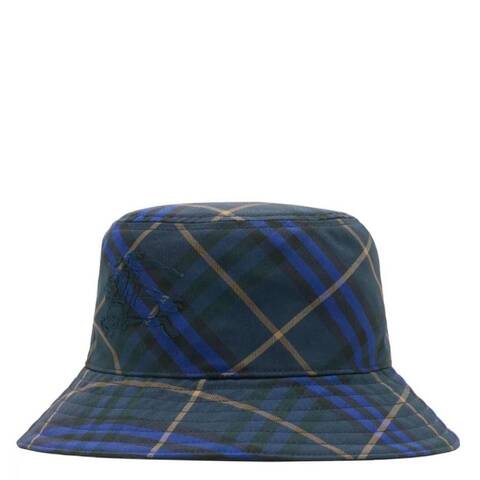 Burberry Mens Hats. Fashion category: Hats. SKU: 8103383. Color: Midnight Ip Check. Burberry EKD Check Print Bucket Hat. This bucket hat features Burberrys House Check pattern with a flat crown and a curved narrow brim. It is finished with an embroidered Equestrian Knight Design (EKD) logo for a signature touch. Polyester 100%. Made in Italy.