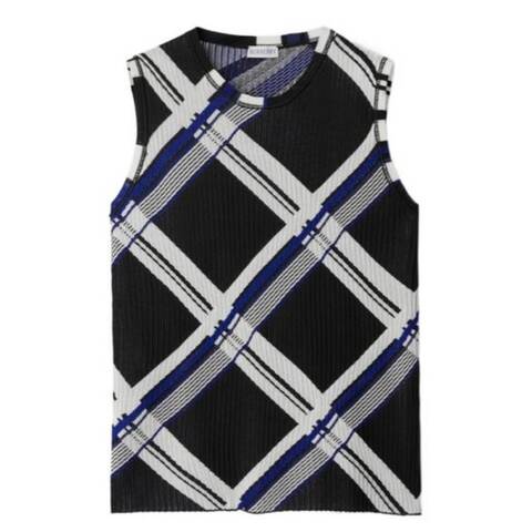 Burberry Ladies Tops. Fashion category: Vests. SKU: 8088896. Color: Black Ip Chk. Burberry Check Jacquard Silk Vest. This vest is made in Italy from silk and jacquard-knitted with a seasonal check. Cut to a slim fit, it features a classic crew neckline. 100% silk. Made in Italy.