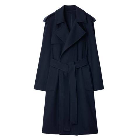 Burberry Ladies Outerwear. Fashion category: Coats & Jackets. SKU: 8095903. Color: Navy. Burberry Cashmere Wrap Belted Trench Coat. This wrap coat is crafted from double-faced cashmere and inspired by Burberrys heritage trench. The lightweight, unlined design is tailored to a relaxed fit with raglan sleeves and features epaulettes, a self-tie belt, side welt pockets, and a back vent for an elegant, effortless silhouette. 100% cashmere. Sleeve lining: 100% viscose.