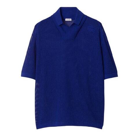 Burberry Mens Tops. Fashion category: Polo Shirts. SKU: 8083171. Color: Knight. Burberry Equestrian Knight-Print Silk-Cotton Mesh Polo Shirt. This polo shirt is crafted from silk cotton with a mesh texture. Its designed with a relaxed fit and features the iconic Equestrian Knight design in a knitted pattern. Material: 61% Silk, 39% Cotton. Made in Italy.