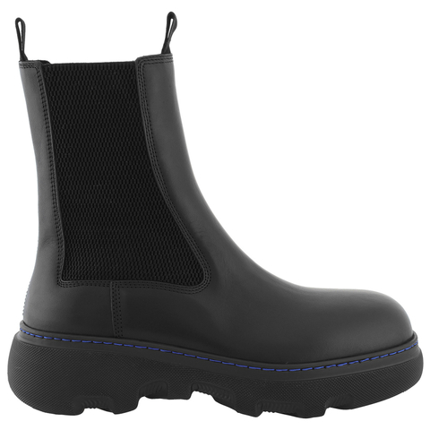 Burberry Ladies Boots. SKU: 8075380. Color: Black. Vamp Style: Slip-on. Burberry Creeper Chelsea Leather Ankle Boots. This boot features double pull-tabs at the opening, a round toe, elasticated side panels, a slip-on style, and a chunky rubber sole. Leather 100%. Made in Italy. <br/><br/><b>Please visit the brand website for sizing information.</b>