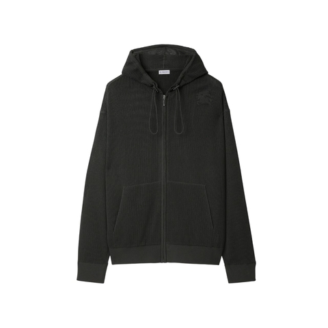 Burberry Mens Tops. Fashion category: Hoodies & Sweatshirts. SKU: 8081175. Color: Onyx. Burberry Silk-Cotton Mesh Zip-Up Hoodie. A relaxed-fit mesh zip hoodie featuring a knitted Equestrian Knight design, with a zip closure, drawcord hood, and rib-knit trims. 60% silk, 40% cotton. Made in Italy.
