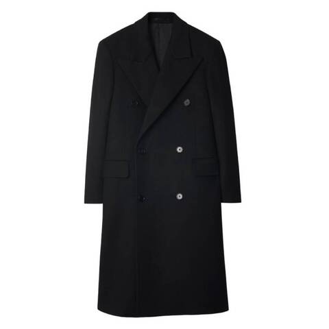 Burberry Mens Outerwear. Fashion category: Coats & Jackets. SKU: 8098033. Color: Black. Burberry Double-Breasted Cashmere Tailored Coat. Crafted from lightweight cashmere, this coat is tailored to a regular fit and fully lined with a half-canvas construction for a softly structured silhouette. Finished with a double-breasted button closure, peak lapels, side flap pockets, a back vent, and padded shoulders. Outer: 100% cashmere. Lining: 100% viscose. Made in Italy.
