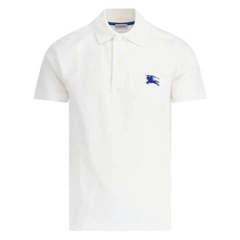 Burberry Mens Tops. Fashion category: Polo Shirts. SKU: 8107451. Color: Salt. Burberry EKD Embroidered Cotton Polo Shirt. This cotton polo shirt features the signature Equestrian Knight motif embroidered on the left chest, adding a refined, iconic detail. Designed with a classic polo collar, short front button fastening, short sleeves, and a straight hem. 100% Cotton. Made in Italy.