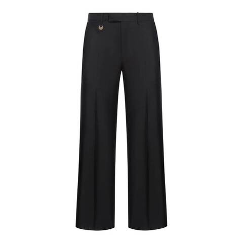 Burberry Mens Bottoms. Fashion category: Pants & Leggings. SKU: 8088592. Burberry Wool-Blend Tailored Trousers. A pair of wool-blend tailored trousers featuring a logo charm, mid-rise waist, and belt loops. Designed with a concealed front fastening, side pouch pockets, two rear welt pockets, a pressed crease, and a straight-leg silhouette for a refined finish. Wool 60%, Silk 40% Made in Italy.