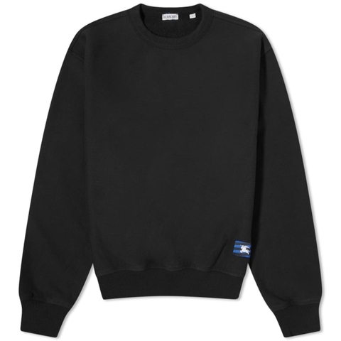 Burberry Mens Tops. Fashion category: Hoodies & Sweatshirts. SKU: 8082093. Color: Black. Burberry EKD Embroidered Cotton Sweatshirt. This oversized sweatshirt is crafted from cotton jersey and features a crew neckline and long sleeves. It is finished with an appliqued Equestrian Knight Design for a signature Burberry touch. 100% Cotton.