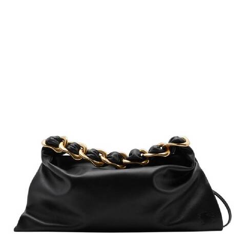 Burberry Ladies Shoulder Bag. SKU: 8088983. Color: Black. Size: L: 15.8 H: 9.1 W: 1. Burberry Small Swan Smooth Leather Shoulder Bag. Crafted from smooth calf leather, this bag features a softly structured silhouette. It is designed with a B chain-link strap interwoven with leather and finished with a subtle Equestrian Knight Design embossing. Material: 100% Calf Leather. Made in Italy.