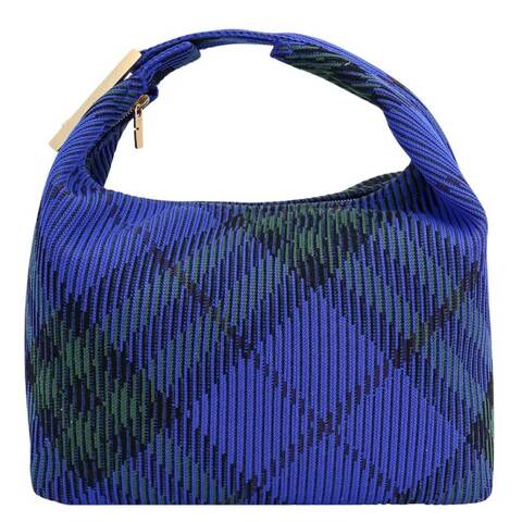 Burberry Ladies Top Handle Bag. SKU: 8082048. Color: Knight. Size: 11 x 6.5 x 13.2in. Burberry Medium Peg Duffle Bag. This softly structured bag is knitted in Italy with the iconic Burberry Check and designed in a lightweight, unlined construction. The curved top handle is secured with a logo-engraved peg clip, adding a refined signature detail. Finished with a secure zip-top closure and a single top handle, the bag offers a polished yet practical design ideal for everyday or professional use. 100% polyamide. Trim: 57% polyester, 43% polyurethane. Made in Italy.