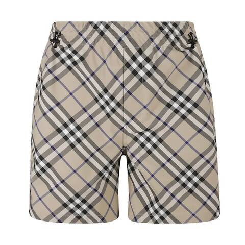 Burberry Mens Bottoms. Fashion category: Shorts. SKU: 8105508. Color: Lichen Ip Check. Burberry Mens Check Pattern Shorts. These shorts are designed with an elasticated waistband for all-day comfort and feature an allover check pattern for a distinctive look. They include two adjustable drawstrings at the sides of the waistband for a flexible fit, a rear flap pocket for added functionality, and an EKD patch at the back for a signature finishing touch. Material: 100% Polyester. Made in Romania.