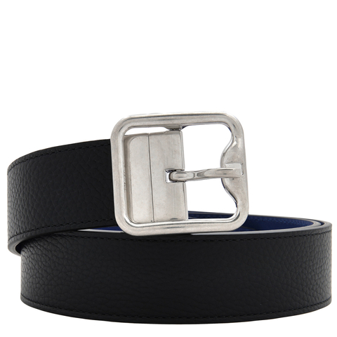 Burberry Mens Belts. Fashion category: Belts. SKU: 8092056. Color: Black/Knight. Burberry B-Buckle Reversible Leather Belt. This Belt features a palladium-plated hardware, reversible, logo-engraved silver-tone hardware, buckle fastening and a adjustable fit. 100% Calf Leather, 100% Palladium Plated Brass. Made in Italy.