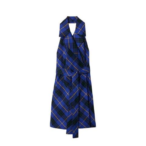 Burberry Ladies Dresses. Fashion category: Casual Dresses. SKU: 8091503. Color: Bright Navy Ip Chk. Burberry Check Pattern Linen Halter Dress. This dress features a chic halterneck design crafted from breathable linen, adorned with the iconic Burberry Check, and tailored to a slim fit with elegant notch lapels and a waist-defining belt for an adjustable silhouette, finished with a refined button closure. 100% Linen.