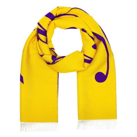 Burberry Unisex Scarves. Fashion category: Scarves. SKU: 8079176. Color: Pear Royal. Size: 75 W x 13. Burberry Logo Jacquard Football Scarf. This lightweight knit scarf features a logo jacquard design for a subtle signature finish. Frayed trims add a relaxed, contemporary touch, making it a versatile accessory for effortless layering. 91% wool, 9% silk. Made in Italy.