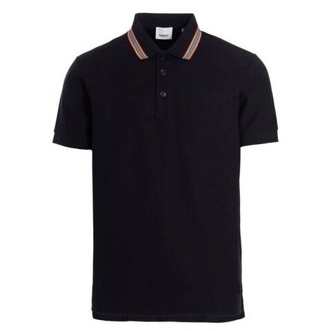Burberry Mens Tops. Fashion category: Polo Shirts. SKU: 8056222. Color: Blue. Burberry Icon Stripe Collar Short Sleeve Polo Shirt. This polo shirt features a signature Icon stripe collar, an embroidered logo at the chest, short sleeves, a slim fit and a straight hem. 100% Cotton. Made in Portugal.