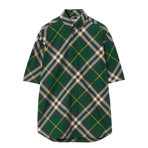 Burberry Mens Tops. Fashion category: Casual Button-Downs. SKU: 8082903. Color: Ivy Ip Check. Burberry Logo-Embroidered Plaid Shirt. A cotton plaid shirt featuring an embroidered logo on the front, a button-down collar, short sleeves, and a curved hem. Cotton 100%, Mother of Pearl 100%. Made in Italy.