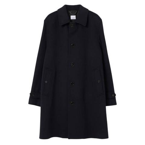 Burberry Mens Outerwear. Fashion category: Coats & Jackets. SKU: 8060197. Color: Midnight Navy. Burberry Paddington Cashmere Car Coat. This Italian-made Paddington car coat is crafted from a cashmere wool blend and tailored to a regular fit with set-in sleeves. It features an exposed single-breasted button front, side button welt pockets, button-tab cuffs, and a back button vent, finished with a Burberry Check undercollar. Outer: 95% cashmere, 3% wool, 2% other fibres. Undercollar: 70% wool, 20% polyamide, 10% cashmere. Lining: 100% cupro. Made in Italy.