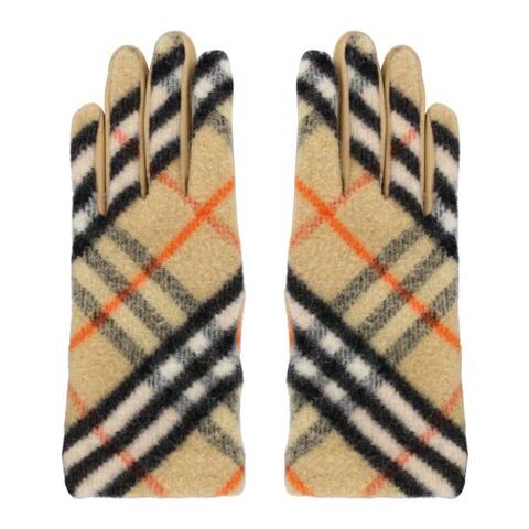 Burberry Ladies Apparel Accessories. Fashion category: Gloves. SKU: 8097265. Color: Sand Ip Check. Burberry Checkered Panel Wool Gloves. A pair of wool gloves showcasing the classic check pattern. Designed in a convenient pull-on style, they feature a full-finger silhouette and are fully lined for added warmth and comfort. Made in Italy.