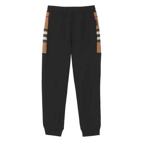 Burberry Mens Bottoms. Fashion category: Pants & Leggings. SKU: 8045013. Color: Black. Burberry Stephan Check-Pattern Track Pants. A pair of Stephan track pants made from a cotton blend, featuring a panelled design with the Vintage Check pattern. They have an elasticated waistband, a rear welt pocket, a straight-leg fit, and elasticated ankles. Cotton 76%, Polyester 24%. Made in Portugal.