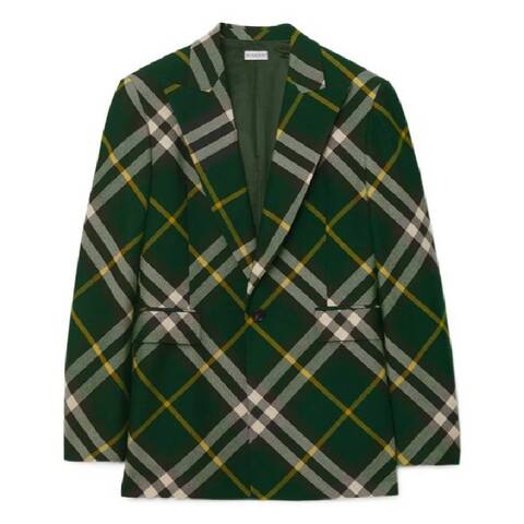Burberry Mens Outerwear. Fashion category: Blazers. SKU: 8083245. Color: Ivy Ip Check. Burberry Tailored Check Pattern Wool Blazer. This blazer features a single-breasted button fastening, long sleeves, a pointed collar, side cover pockets, a single vent, full lining, a semi-canvas structure, and shoulder pads. 100% wool. Made in Italy.