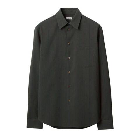 Burberry Mens Tops. Fashion category: Casual Button-Downs. SKU: 8087458. Color: Granite. Burberry Mens Striped Wool Shirt. Striped shirt crafted from wool, featuring a vertical stripe design for a sharp, tailored look. Styled with a pointed flat collar, front button fastening, long sleeves with buttoned cuffs, and a chest patch pocket. The curved hem adds a relaxed yet polished finish. Wool 100% Made in Italy.