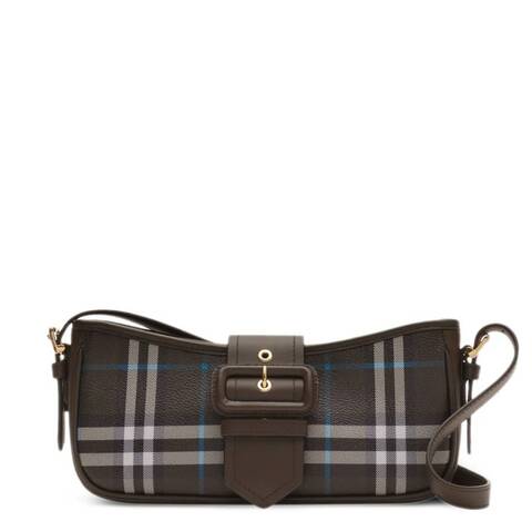 Burberry Ladies Shoulder Bag. SKU: 8108527. Color: Snug Ip Check. Size: L: 10.23 x H: 4.72 x W: 2.36. Burberry Checkered Pattern Sling Bag. This shoulder bag is crafted from leather and features a buckle-strap fastening, an adjustable shoulder strap, and a classic tartan check pattern with leather trim. Material: 100% Calf Leather. Made in Italy.