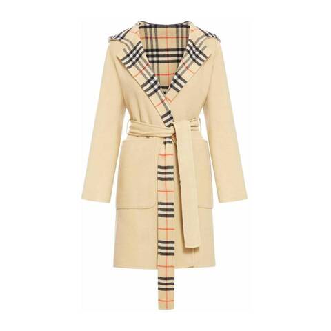 Burberry Ladies Outerwear. Fashion category: Coats & Jackets. SKU: 8093831. Color: Flax. Burberry Womens Flax Mid-Length Reversible Check Wool Car Coat. Crafted from premium wool, this hooded car coat features a reversible design that transitions from a solid color to the iconic Burberry Check. Softly tailored in a regular fit, it includes an adjustable belt to define the silhouette. Part of the Burberry Classics collection, it blends timeless style with a distinctive brand perspective. Finished with a wrap closure, the coat offers side welt pockets on one side and patch pockets on the reverse for practical versatility. 100% wool. Made in Italy.