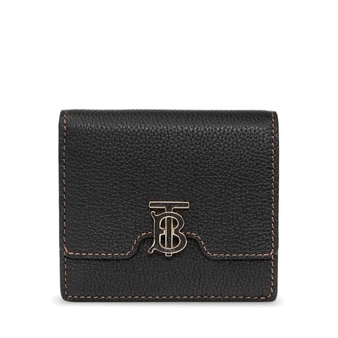 Burberry Ladies Wallets. SKU: 8062347. Color: Black. Size: 3.9 x 3.3 x 1.4 in. Burberry Ladies Black Grainy Leather TB Folding Wallet. A compact folding wallet in Italian-tanned grainy leather, punctuated with a gold-plated Thomas Burberry Monogram. The style features multiple pockets and card slots.