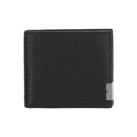 Burberry Mens Wallets. SKU: 8080663. Color: Black. Size: H: 3.74 x W: 4.33. Burberry B Cut Leather Wallet. This wallet is crafted from luxurious calfskin leather and features eight card slots, one bill compartment, and two additional pockets. It is designed with B-Cut details and engraved with the iconic Burberry logo. Material: 100% Calfskin Leather. Made in Romania.