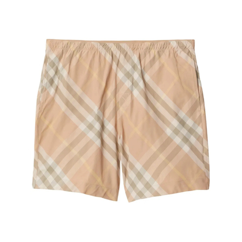 Burberry Mens Swim. Fashion category: Swimsuits. SKU: 8083161. Color: Flax Ip Check. Burberry Check Pattern Swim Shorts. This swim short features a check pattern, an elasticated waistband, and slip pockets to the sides. 100% Polyamide. Made in Portugal.