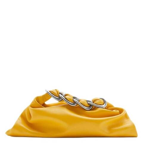 Burberry Ladies Top Handle Bag. SKU: 8090988. Color: Sunflower. Burberry Small Swan Leather Top Handle Bag. This top-handle bag is crafted from smooth-grain calf leather, combining elegant design with practical functionality. It features a top zip fastening, a braided chain-link and leather handle, a spacious main compartment, and an internal zip pocket. Finished with gold-tone hardware, a leather lining, and the signature Equestrian Knight motif. 100% Leather.