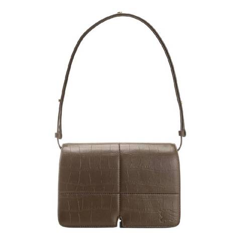 Burberry Ladies Shoulder Bag. SKU: 8093731. Color: Military. Size: L: .06 x H: 5.91 x W: 3.54. Burberry Snip Adjustable Strap Leather Shoulder Bag. This shoulder bag is crafted from leather and features an adjustable shoulder strap. It has a flap with a magnetic closure, an exterior and interior pocket, hand-painted edges, and brushed metal finishes. The interior is also lined with leather for a luxurious touch. Material: 100% Lamb Leather. Made in Italy.
