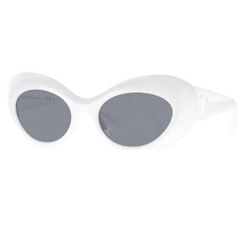 Versace Sunglasses. Series number: VE4456U. Color code: 314/1. Shape: Oval. Lens Width: 52 mm. Lens Bridge: 19 mm. Arm Length: 140 mm. Frame Material: Acetate. Frame Color: White. Lenses Type: Grey. Rim Style: Full-Rim. UPC/EAN code: 8056597921107. Versace Grey Oval Ladies Sunglasses VE4456U 314/1 52.<br/><br/>Manufacturer's Packaging Included. Packaging Size And Color May Vary.