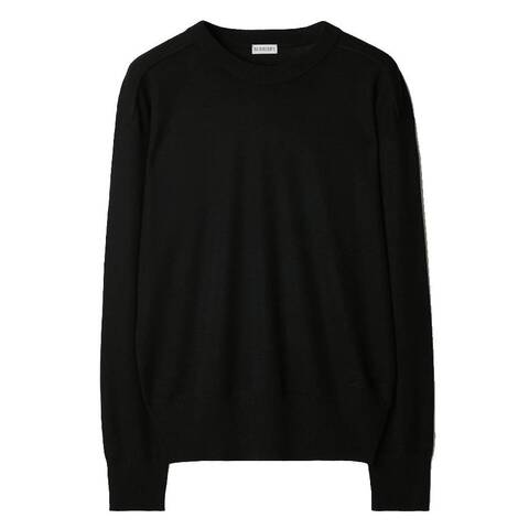 Burberry Mens Tops. SKU: 8095487. Color: Black. Burberry Mens Lightweight Wool Jumper. This lightweight wool sweater is knitted to a regular fit and styled with a classic crew neck. Exposed shoulder seams add a subtle design detail, while rib-knit trims and a knitted Equestrian Knight Design at the waist complete the look with a refined, modern finish. 100% wool.