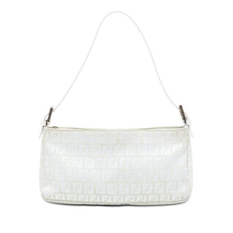 Pre-owned Fendi Zucchino Canvas Pochette shoulder bag crafted in signature canvas with a flat leather strap, top zip closure, and an interior open pocket. Compact yet stylish, this designer handbag offers a sleek silhouette that pairs easily with both casual and elevated looks, making it a timeless choice for any wardrobe. The strap was repainted, and the bags iconic Fendi design reflects luxury and contemporary style.<br /><br /> Designed for both fashion and functionality, this Fendi pochette is sized at approximately 5.12 inches high x 9.84 inches wide x 1.38 inches deep, offering just enough space for your daily essentials while maintaining a lightweight, elegant profile. The secure top zip closure and practical interior pocket help keep your belongings organized, making this stylish shoulder bag perfect for everyday use.<br /><br /> Model: Zucchino Canvas Pochette. Item# 5ES6MG54BO5W8885. Inclusions: None. Condition Rating: B+. Pre-owned condition with signs of wear consistent with age and use, including stains on the exterior back, bottom, and front; a repainted and stained handle/strap; scratched hardware attachment and zipper; and stains on the interior lining. This is a great opportunity to own an authentic handbag at a more accessible price.