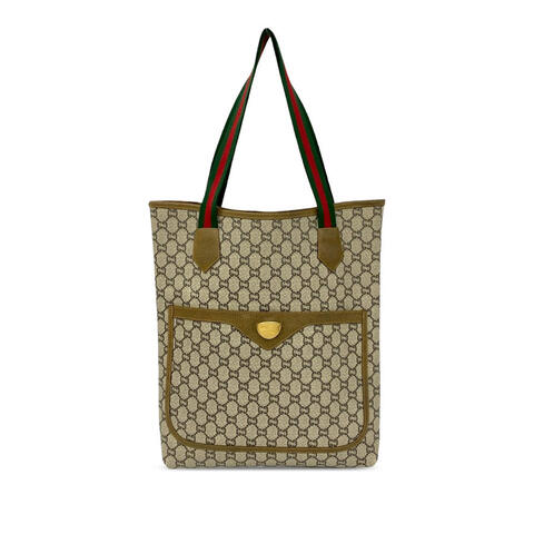 The Gucci GG Supreme Plus Web Tote is a timeless designer handbag that blends iconic appeal with everyday versatility. Crafted with a durable coated canvas body and accented with leather trim, this elegant tote features flat straps, an open top, an exterior front slip pocket with magnetic closure, and an interior slip pocket for added convenience. Its classic silhouette and signature Gucci details make it an excellent choice for anyone seeking luxury and contemporary style.<br /><br /> Designed for both fashion and functionality, this pre-owned Gucci tote offers a spacious interior that makes it easy to carry your daily essentials in style. With dimensions of 14.96 x 12.20 x 3.35 inches, it is well-suited for work, shopping, travel, or casual outings, while the practical pocket layout helps keep your items organized. This authentic Gucci handbag is a stylish and versatile accessory that is perfect for everyday use.<br /><br /> Pre-owned Gucci GG Supreme Plus Web Tote Ladies IV5LTNP36F1W7GU3. Model: GG Supreme Plus Web Tote. Item# IV5LTNP36F1W7GU3. Condition Rating: AB. Comments: Exterior Back Creased, Scratched. Exterior Bottom Scratched. Exterior Corners Scratched. Exterior Front Scratched, Creased. Exterior Handle/Strap Creased. Hardware Embellishment Scratched. Hardware Practical Attachment Scratched. Interior Lining Stained With Others, Scratched, Stained With Transfer of Color. Inclusions: None. This is a great opportunity to own an authentic handbag at a more accessible price.