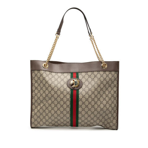 Pre-owned Gucci Large GG Supreme Rajah Tote Ladies YH5JW2N30V3N3V2O is a statement designer handbag crafted with Guccis iconic GG Supreme coated canvas, refined leather trim, and striking gold-tone tiger head detail. Finished with curb chain straps and an open top with a magnetic closure, this elegant tote offers a standout look while reflecting luxury and contemporary style.<br /><br /> Designed for both fashion and functionality, this Gucci Rajah tote offers a spacious silhouette with dimensions of 13.58 x 17.52 x 2.36 inches, making it ideal for carrying daily essentials in style. The signature design, premium materials, and included dust bag add to its appeal, making this authentic Gucci handbag a smart choice for collectors and fashion lovers alike, perfect for everyday use.<br /><br /> Model: Large GG Supreme Rajah Tote. Item# YH5JW2N30V3N3V2O. Inclusions: Dust bag. Condition Rating: B+. Pre-owned condition. Comments: Exterior Back Worn. Exterior Corners Worn. Exterior Front Worn. Exterior Handle/Strap Worn. Exterior Side Stained With Others, Worn. Hardware Closure Scratched. Hardware Embellishment Scratched. Hardware Practical Attachment Damaged, Scratched. Interior Lining Stained With Others. This is a great opportunity to own an authentic handbag at a more accessible price.