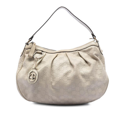 The pre-owned Gucci Guccissima Sukey Shoulder Bag is a timeless designer accessory that blends elegance with practicality. Crafted with Guccis signature Guccissima leather, this sophisticated handbag features a sleek leather body, a flat leather strap, a secure top zip closure, and convenient interior zip and slip pockets for easy organization. With dimensions of 11.42 x 16.14 x 4.13 inches, it offers ample space for your daily essentials while showcasing luxury and contemporary style. <br /><br /> Designed for both fashion and functionality, this Gucci Sukey Shoulder Bag is an excellent choice for anyone seeking a refined handbag that transitions effortlessly from day to night. The included charm adds a stylish finishing touch, while the roomy interior and secure zip closure make it as practical as it is chic. Whether paired with casual outfits or elevated looks, this bag is perfect for everyday use. <br /><br /> This authentic pre-owned Gucci handbag is a smart option for luxury lovers looking to invest in iconic designer style. Condition Rating: B+. Comments: Exterior Back Worn, Creased, Stained With Others. Exterior Bottom Stained With Others, Worn. Exterior Corners Worn. Exterior Front Worn, Scratched, Creased, Stained With Others. Exterior Handle/Strap Stained With Others, Cracked, Scratched, Worn. Exterior Side Stained With Others, Worn. Exterior Top Stained With Others, Worn. Hardware Embellishment Scratched. Hardware Practical Attachment Scratched. Zipper Scratched. Interior Lining Worn, Stained With Others. Interior Pocket Stained With Others. Inclusions: Charm. Model: Guccissima Sukey Shoulder Bag. Item# 7UGV7VVKFQ6JFHS2. This is a great opportunity to own an authentic handbag at a more accessible price.
