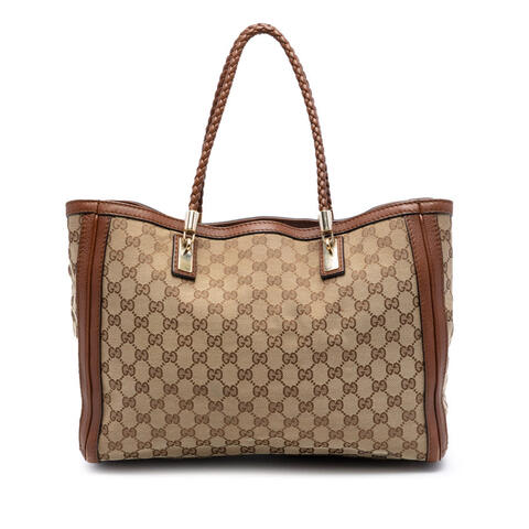 The Gucci Medium GG Canvas Bella Tote is a timeless designer handbag that blends signature elegance with everyday versatility. Crafted with a durable GG canvas body, refined leather trim, and braided leather straps accented with tassels, this stylish tote offers an iconic look that instantly elevates any wardrobe. Its open top with lobster clasp closure and convenient interior zip pocket add practicality to its sophisticated design, making it a standout choice for anyone who appreciates luxury and contemporary style.<br /><br /> Designed for both fashion and functionality, this pre-owned Gucci Bella tote offers ample space with dimensions of 10.83 x 14.37 x 6.10 inches, making it ideal for carrying daily essentials with ease. The classic silhouette and instantly recognizable Gucci design make it a smart choice for work, shopping, travel, or casual outings. With its combination of designer appeal and useful storage, this handbag is perfect for everyday use.<br /><br /> This pre-owned Gucci Medium GG Canvas Bella Tote is a wonderful option for buyers seeking authentic designer fashion at a better value. Condition Rating: B+. Comments: Exterior Back Creased, Stained With Others. Exterior Corners Worn. Exterior Front Stained With Others, Creased. Exterior Handle/Strap Stained With Others, Worn. Exterior Side Worn. Exterior Top Worn, Stained With Others. Hardware Practical Attachment Scratched. Zipper Scratched. Interior Lining Stained With Others. Interior Pocket Stained With Others. Inclusions: None. Model: Medium GG Canvas Bella Tote. Item# 8LZZ3HGZD825Q549. Pre-owned Gucci Medium GG Canvas Bella Tote Ladies 8LZZ3HGZD825Q549. This is a great opportunity to own an authentic handbag at a more accessible price.