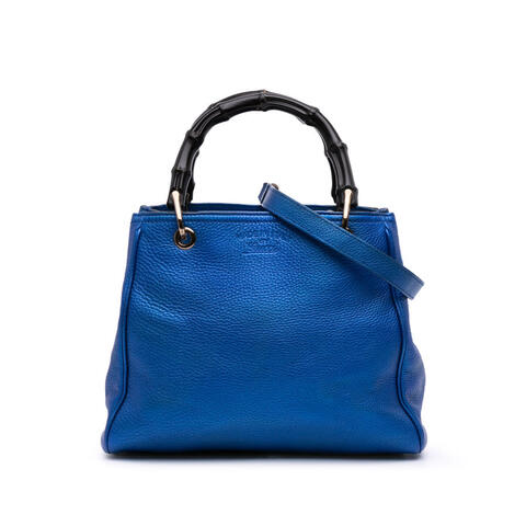 The Gucci Small Metallic Calfskin Bamboo Shopper Satchel is a chic and versatile designer handbag crafted from metallic calfskin leather, featuring signature bamboo top handles, a detachable and adjustable flat leather shoulder strap, an open top with magnetic snap closure, and interior zip and slip pockets for organized storage. Sized at 9.45 x 10.83 x 4.53 inches, this elegant satchel offers a sophisticated silhouette that transitions effortlessly from day to evening, making it a standout addition to any luxury handbag collection with luxury and contemporary style.<br /><br /> Designed for both fashion and functionality, this pre-owned Gucci Bamboo Shopper Satchel combines iconic design with practical everyday appeal. The spacious interior and multiple carrying options make it easy to style and comfortable to use, whether carried by hand or worn over the shoulder with the included shoulder strap. Its distinctive metallic finish and timeless bamboo detailing create a refined statement piece that is perfect for everyday use.<br /><br /> This pre-owned Gucci Small Metallic Calfskin Bamboo Shopper Satchel, model Small Metallic Calfskin Bamboo Shopper Satchel, Item# LMSSRLEAC8WBZM8N, includes the shoulder strap. Condition Rating: C. Comments: Exterior Back Repainted. Exterior Bottom Repainted. Exterior Corners Worn. Exterior Front Creased, Repainted. Exterior Handle/Strap Repaired, Repainted, Split, Worn. Exterior Side Repainted. Exterior Top Loose Stiching, Worn, Repainted. Hardware Closure Scratched. Hardware Practical Attachment Scratched. Zipper Scratched. Interior Lining Stained With Others, Repainted. This is a great opportunity to own an authentic handbag at a more accessible price.