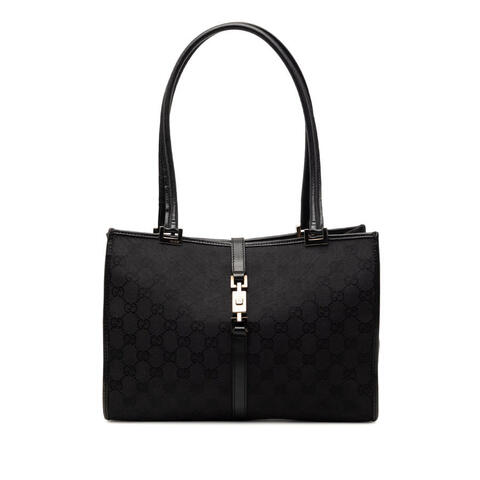 Pre-owned Gucci GG Canvas Jackie Tote in the iconic GG canvas with leather trim, rolled leather handles, and a signature open top with strap and push-lock closure. This elegant designer handbag offers a refined silhouette in a compact yet practical size, measuring approximately 7.87 x 11.61 x 3.54 inches, making it a standout accessory for day-to-night wear. A timeless Gucci purse that blends heritage appeal with luxury and contemporary style.<br /><br /> Designed for both fashion and functionality, this Gucci Jackie tote features an interior zip pocket to help keep your essentials organized while maintaining its sleek, sophisticated look. The classic GG canvas exterior and leather detailing make it a versatile choice that pairs beautifully with both casual and polished outfits, perfect for everyday use.<br /><br /> This authentic pre-owned Gucci GG Canvas Jackie Tote is a stylish option for anyone seeking a coveted luxury handbag with enduring designer appeal. Condition Rating: B+. Comments: Exterior Back Cut Stitching, Worn. Exterior Bottom Scratched, Worn. Exterior Corners Worn. Exterior Front Worn. Exterior Handle/Strap Worn. Exterior Side Worn. Hardware Closure Scratched. Hardware Practical Attachment Scratched. Zipper Scratched. Interior Lining Stained With Others. Inclusions: None. Model: GG Canvas Jackie Tote. Item# 2R2BG145GBNCUCWL. This is a great opportunity to own an authentic handbag at a more accessible price.