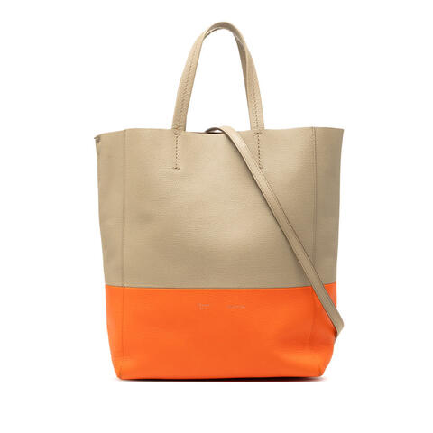 The pre-owned Celine Small Bicolor Leather Vertical Cabas is a chic designer satchel that blends timeless elegance with modern versatility. Crafted from high-quality leather, this stylish handbag features flat leather handles, a detachable flat leather strap, an open top, and an interior zip pocket for easy organization. Its structured silhouette and sophisticated bicolor design make it an eye-catching choice for anyone seeking luxury and contemporary style.<br /><br /> Designed for both fashion and functionality, this Celine Vertical Cabas offers the ideal balance of practicality and refined appeal. With dimensions of 10.63 x 8.66 x 3.94 inches, it provides enough space for daily essentials while maintaining a sleek, compact profile. Whether carried by hand or worn with the detachable shoulder strap, this authentic Celine handbag is perfect for elevating day-to-day outfits and is perfect for everyday use.<br /><br /> This authentic pre-owned Celine handbag includes the shoulder strap and dust bag. Condition Rating: B+. Comments: Interior Lining Stained With Pen Mark, Stained With Others. Exterior Back Scratched. Exterior Corners Worn. Zipper Scratched, Rusty/Tarnished. Hardware Practical Attachment Scratched. Exterior Side Stained With Others. Exterior Top Cracked. Interior Pocket Stained With Others. Exterior Handle/Strap Stained With Transfer of Color, Creased, Worn. A great choice for collectors and fashion lovers alike, this is a great opportunity to own an authentic handbag at a more accessible price.