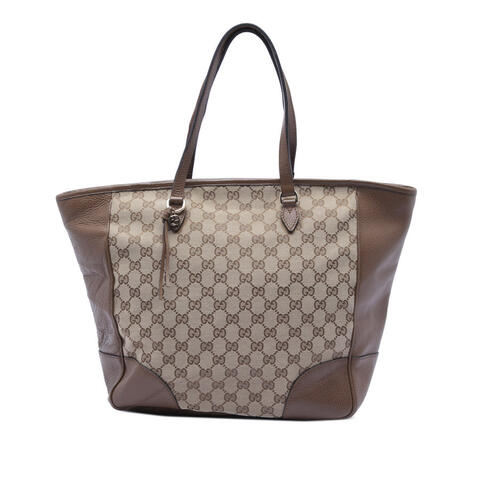The Gucci GG Canvas Bree Zippered Tote is a timeless designer handbag that blends iconic style with everyday versatility. Crafted with a durable canvas body and refined leather trim, this elegant tote features flat leather handles, a secure top zip closure, and convenient interior zip and slip pockets for easy organization. With dimensions of 12.60 x 11.61 x 6.30 inches, it offers ample space for your daily essentials while showcasing luxury and contemporary style. <br /><br /> Designed for both fashion and functionality, this pre-owned Gucci tote is an excellent choice for anyone seeking a sophisticated handbag with practical appeal. The classic GG canvas design makes it instantly recognizable, while the roomy interior and structured silhouette make it perfect for carrying everything from work essentials to personal items, making it perfect for everyday use. <br /><br /> This pre-owned Gucci GG Canvas Bree Zippered Tote is rated Condition B+ and remains a stylish, value-driven option for luxury lovers. Comments: Exterior Back Creased. Exterior Bottom Stained With Others, Creased. Exterior Corners Worn. Exterior Front Stained With Others, Creased. Exterior Handle/Strap Stained With Others. Exterior Side Creased. Hardware Practical Attachment Scratched. Zipper Scratched. Interior Lining Stained With Others. Interior Pocket Stained With Others. Inclusions: None. Model: GG Canvas Bree Zippered Tote. Item# N9RNHAK7X012QUHD. This is a great opportunity to own an authentic handbag at a more accessible price.
